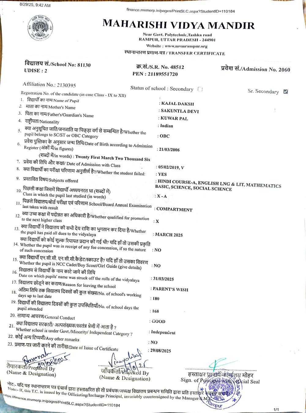 Near Govt. Polytechnic School , Rampur (244901) - Uttar Predesh